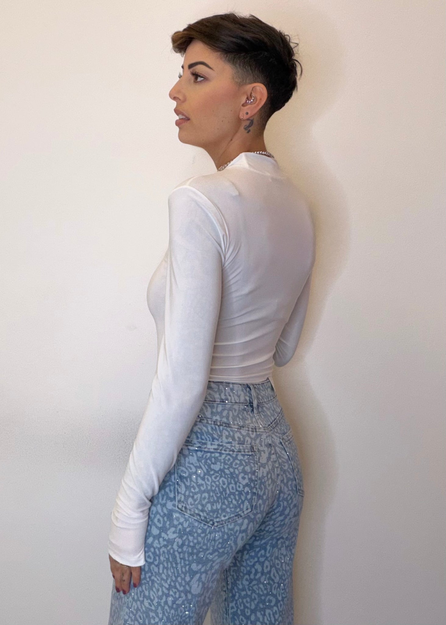 Maglia crop basica a manica lunga - bianca Apri lightbox dell'immagine