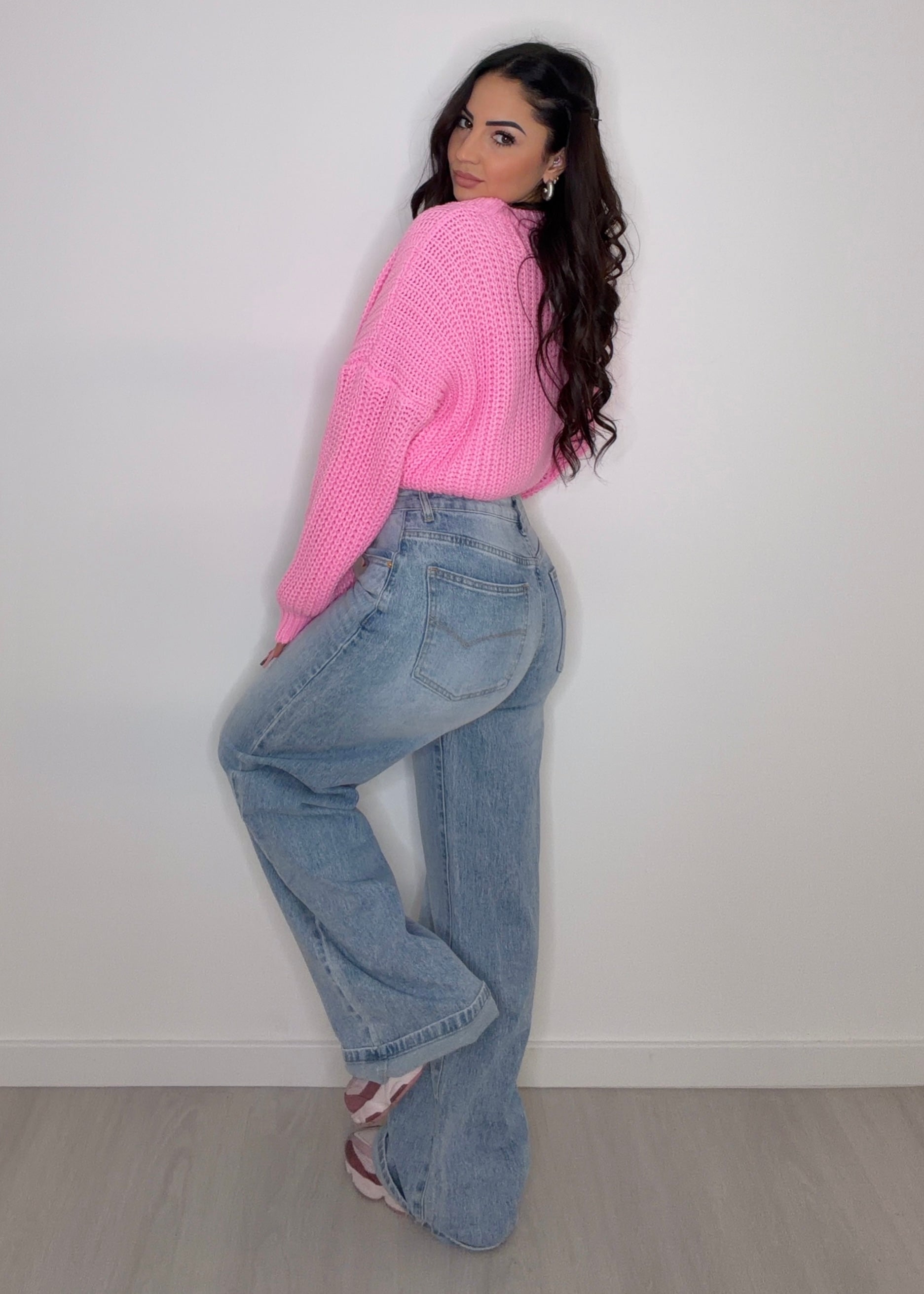 Jeans Wide leg a palazzo lungo, dal design con linea fluida e tessuto elasticizzato per il massimo comfort. Modello molto bello e versatile, perfetto per ogni occasione.