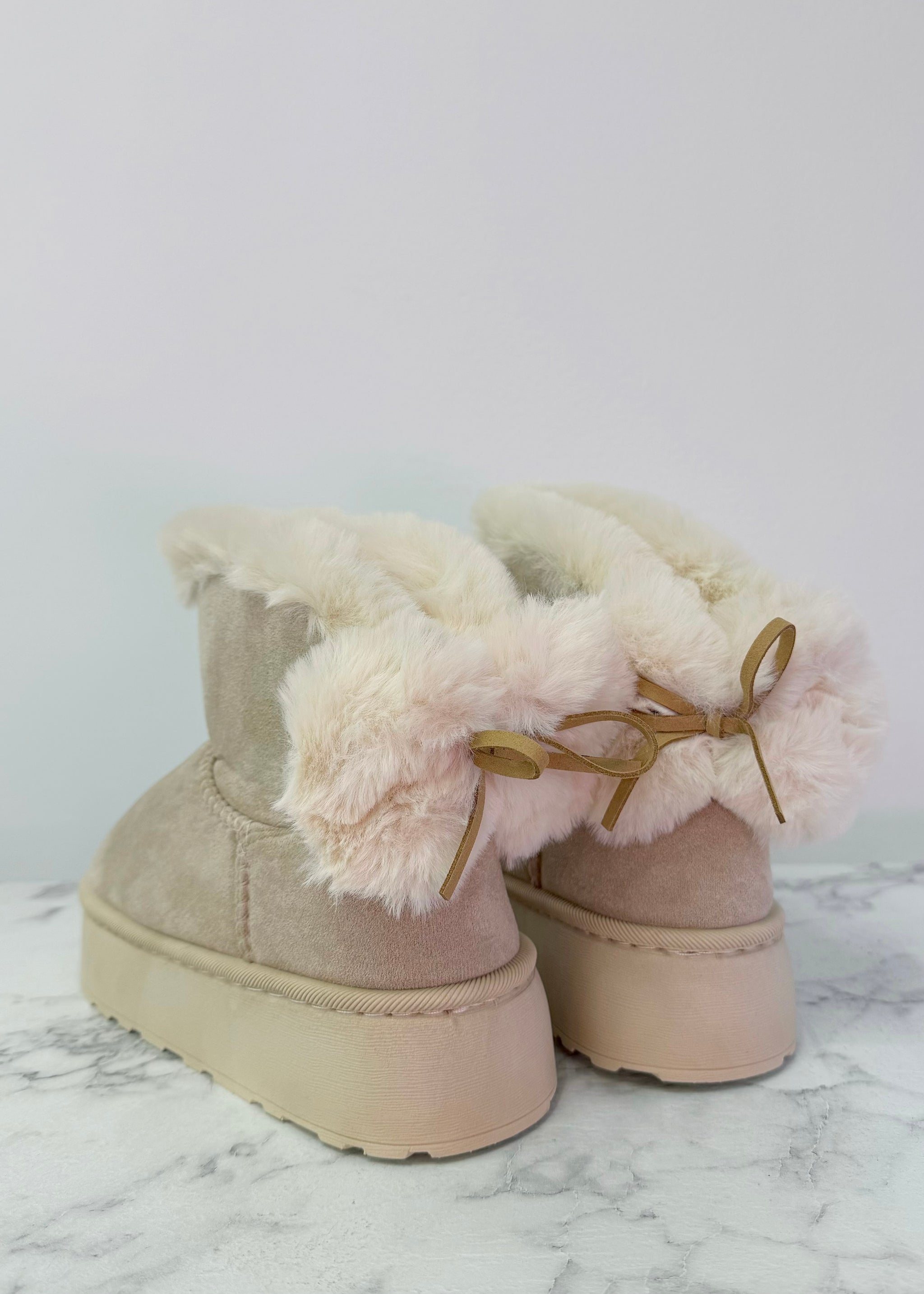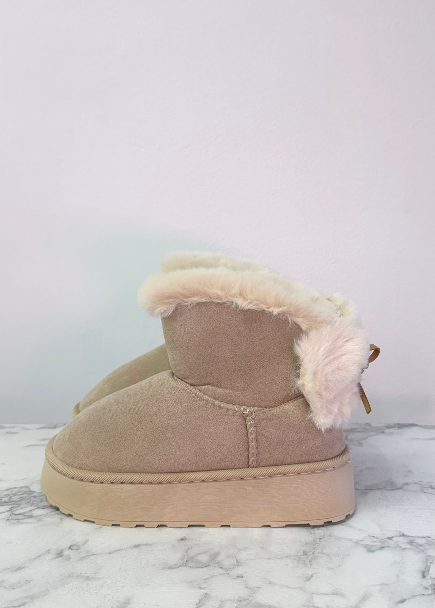 Scopri il comfort e lo stile senza tempo con il nostro stivaletto in stile UGG. Realizzato con materiali di altissima qualità, offre un calore avvolgente grazie al morbido pelo interno, che rende ogni passo un’esperienza di puro comfort. La punta arrotondata e la linea classica si abbinano perfettamente a qualsiasi look invernale, mentre il fiocchetto elegante sul retro aggiunge un tocco di femminilità sofisticata.