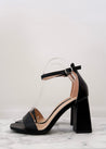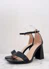 Sandalo nero con tacco quadrato, stabile e comodo, caratterizzato da una fascia sul davanti che avvolge il piede con eleganza. Ideale per cerimonie o serate estive, unisce comfort e stile in un solo passo.