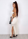 Un abito che esalta la femminilità con eleganza e sensualità. Realizzato interamente in pizzo trasparente, presenta una sottoveste corta che lascia intravedere le gambe fino alle caviglie, creando un raffinato gioco di trasparenze. Lo scollo a X sul davanti e il disegno incrociato sulla schiena scoperta lo rendono unico e d’effetto, mentre il laccio regolabile assicura una vestibilità stabile e armoniosa.