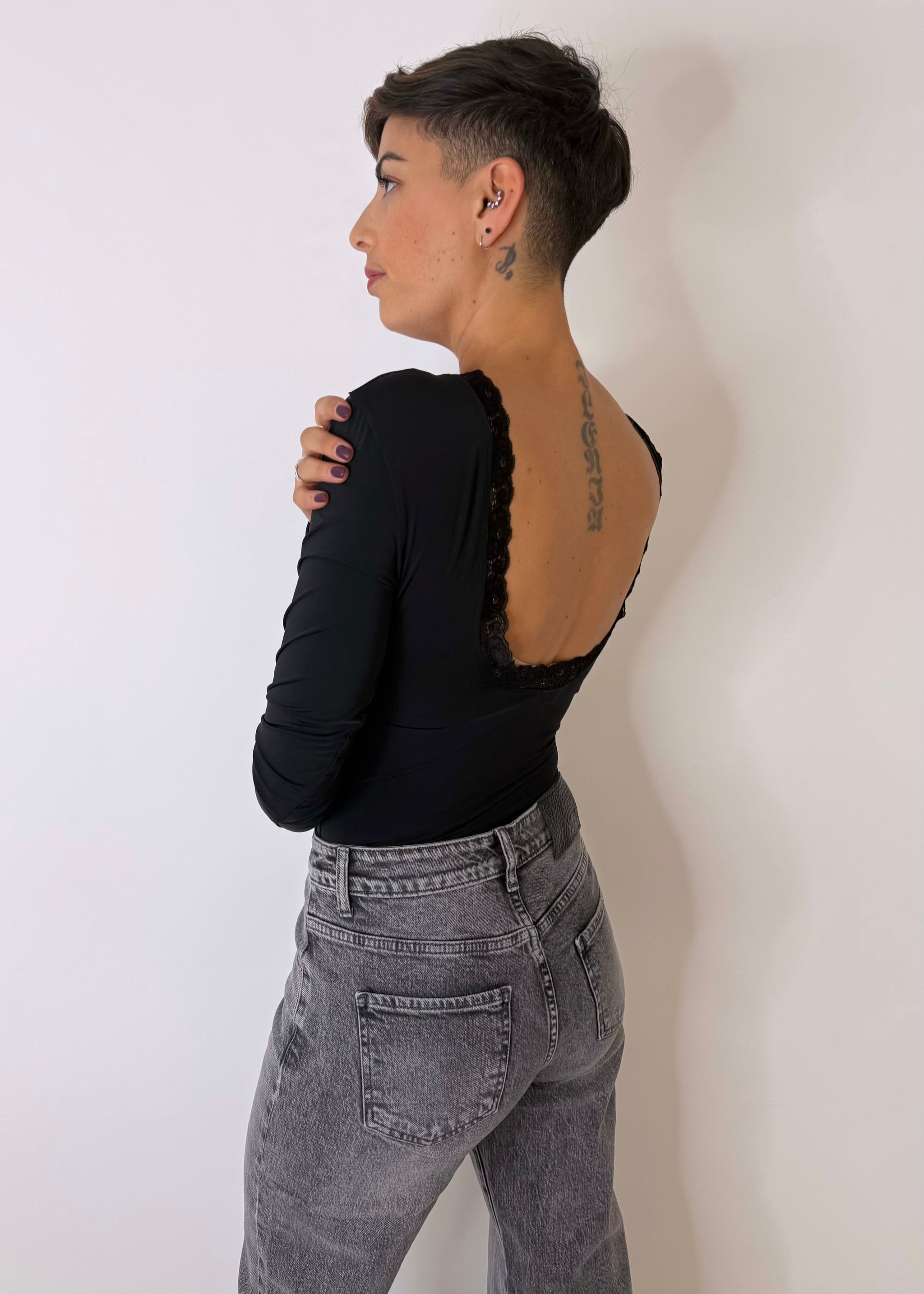 Body a manica lunga in top quality, elegante e sensuale, perfetto per valorizzare ogni look. Lo scollo a V in pizzo dona un tocco raffinato e femminile, mentre la vestibilità taglia unica si adatta comodamente da XS a una M abbondante. Ideale da indossare sia per occasioni speciali che per aggiungere un dettaglio sofisticato a outfit quotidiani.