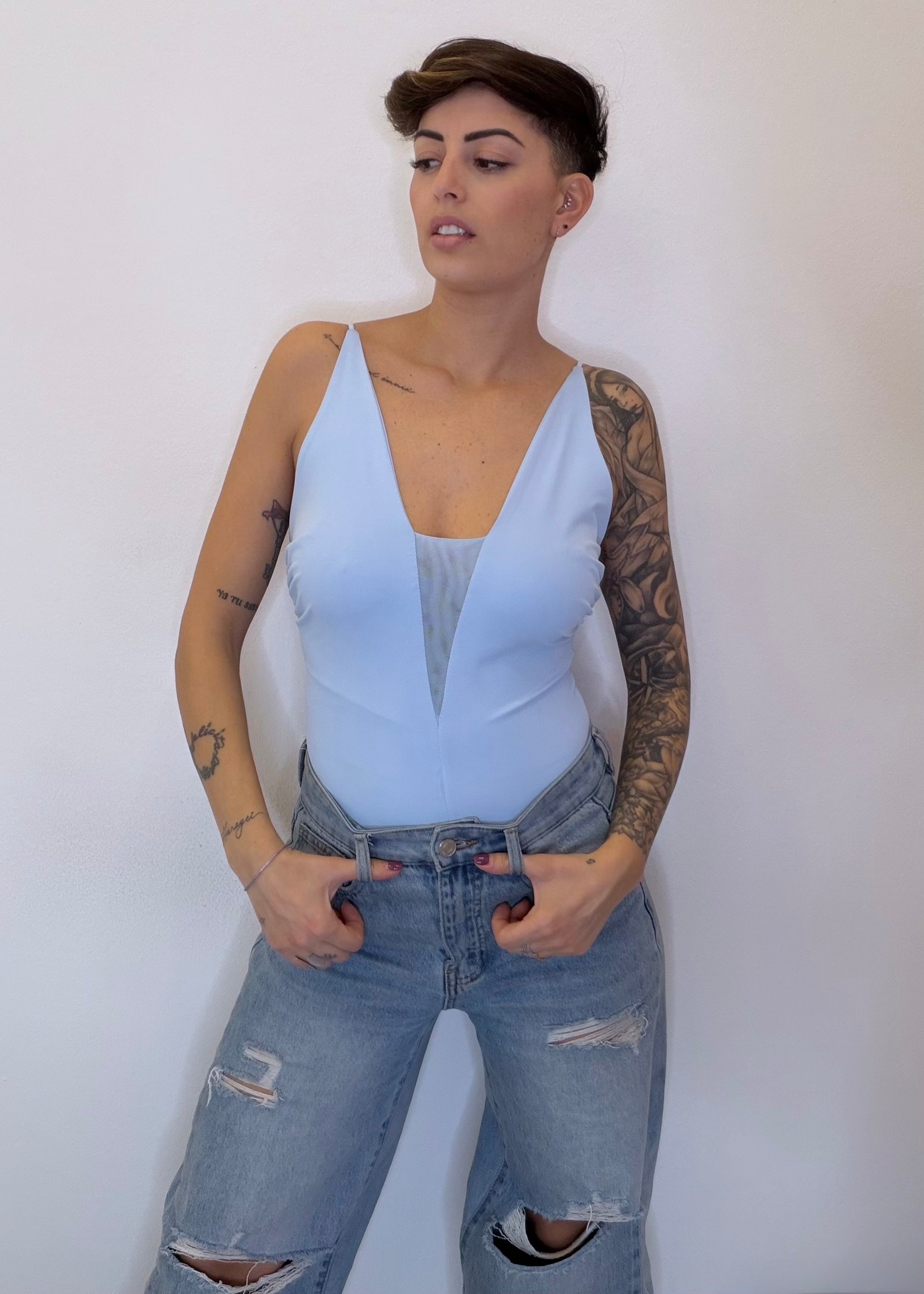Body V in trasparenza - azzurro