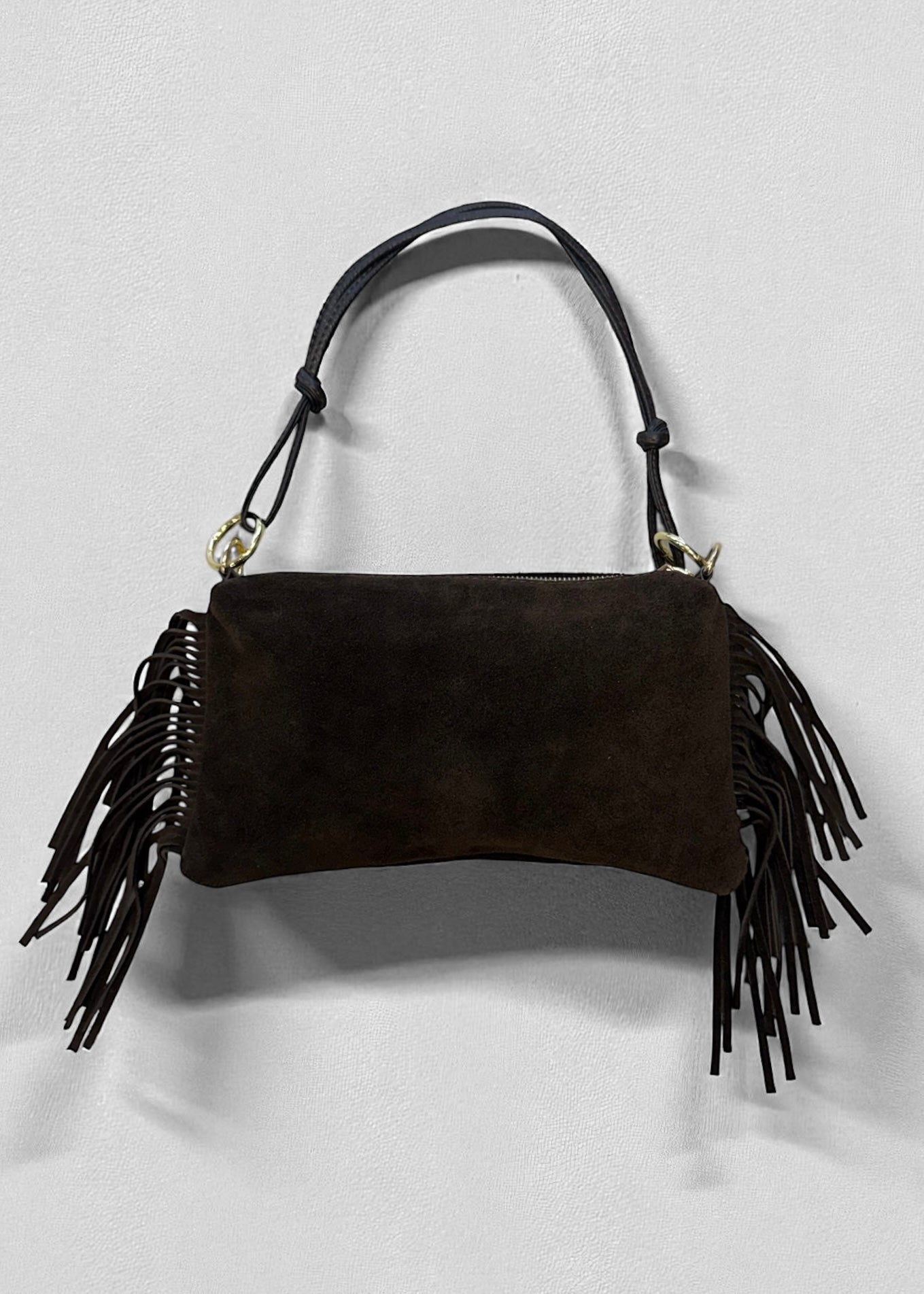 Borsa Vera pelle con frange laterali - moro