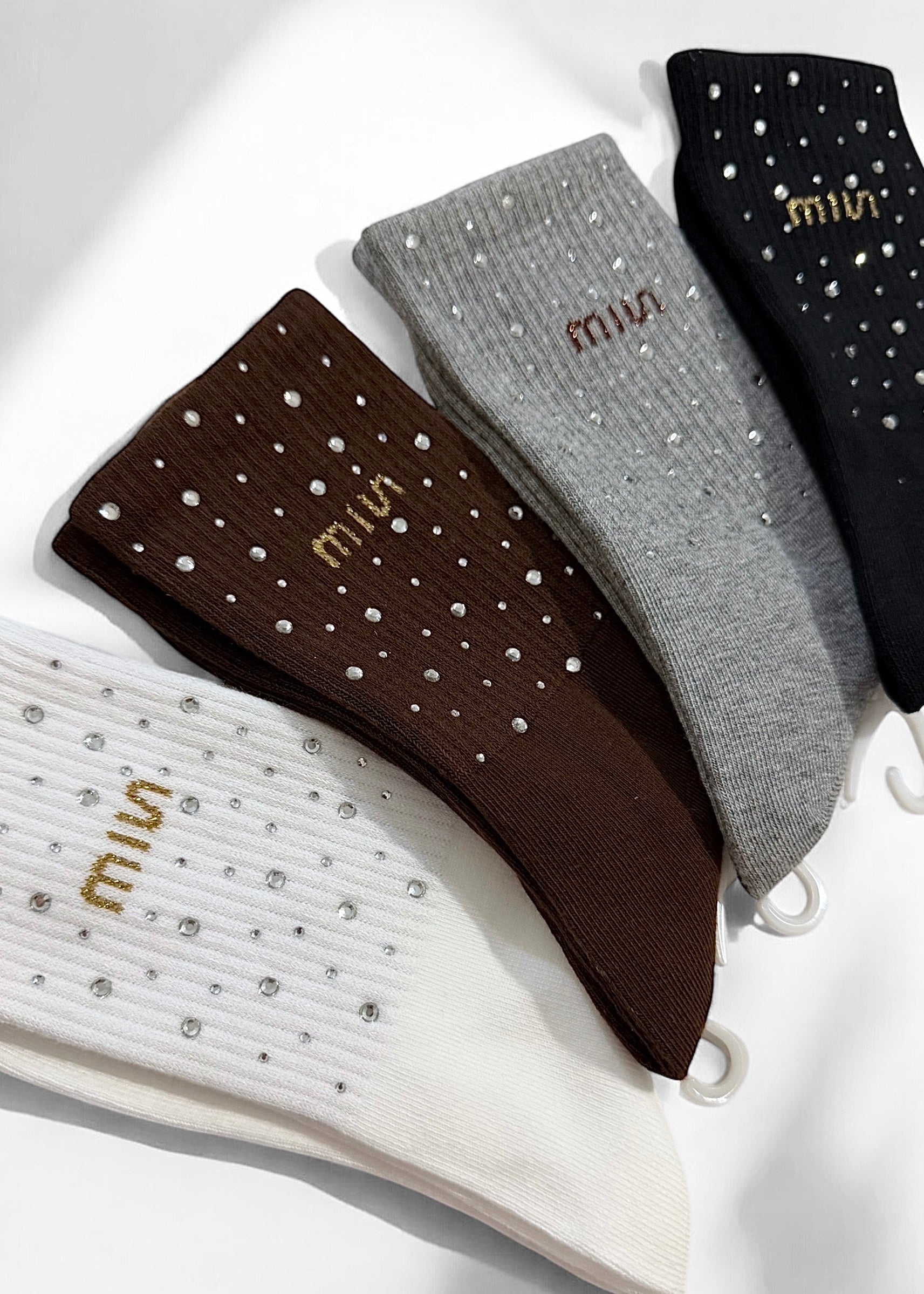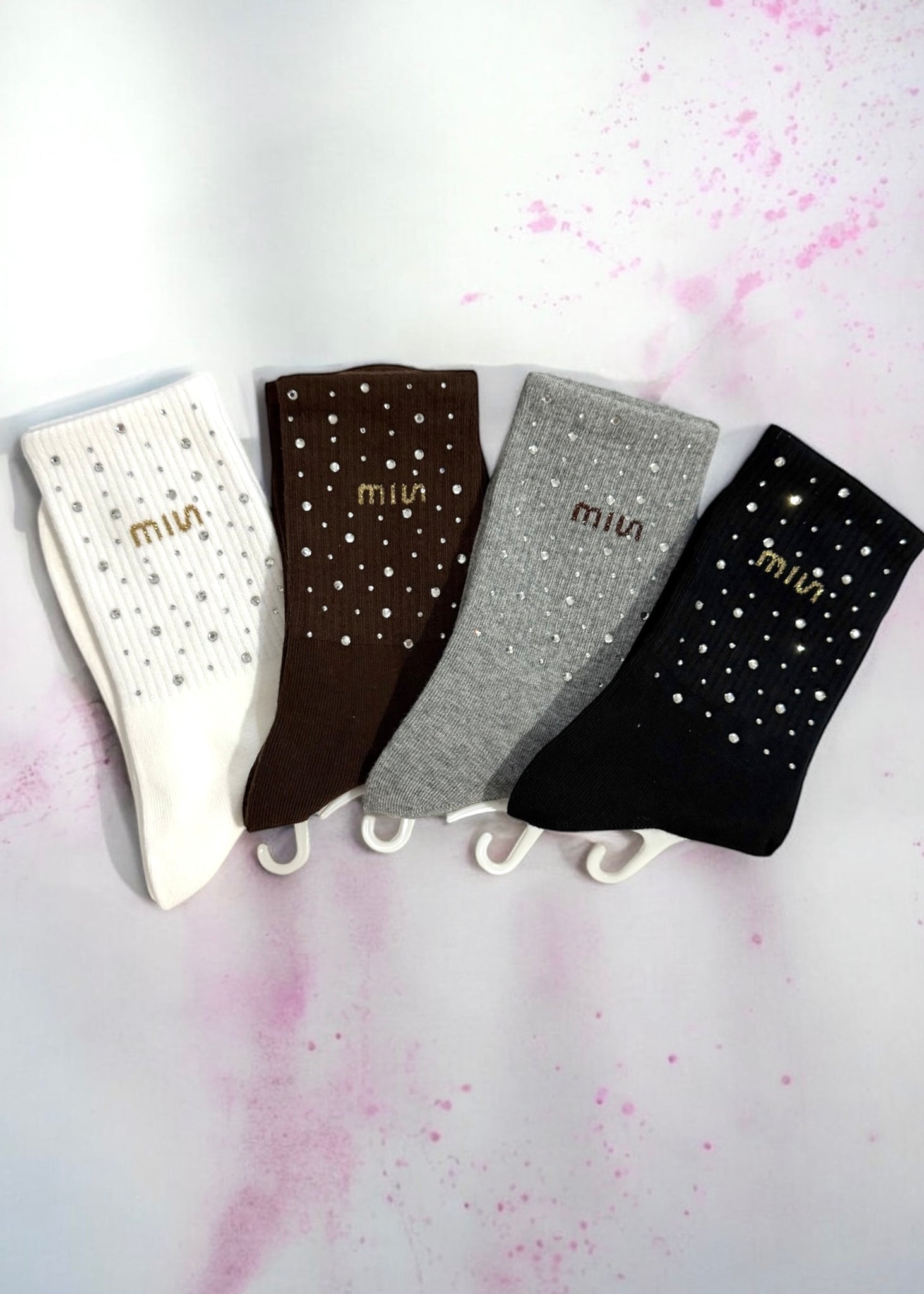 Calzini crew in cotone con brillanti, altezza circa oltre 10cm sopra la caviglia, taglia unica. Prezzo al paio, colore a scelta.