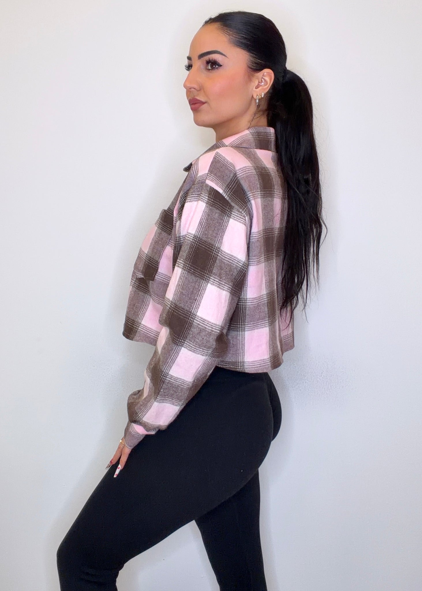 Camicione a scacchi nei toni caldi del marrone e del rosa, dal design uranno e versatile. Realizzato in un morbido mix di cotone e viscosa, risulta piacevole sulla pelle e ideale da indossare tutto il giorno.