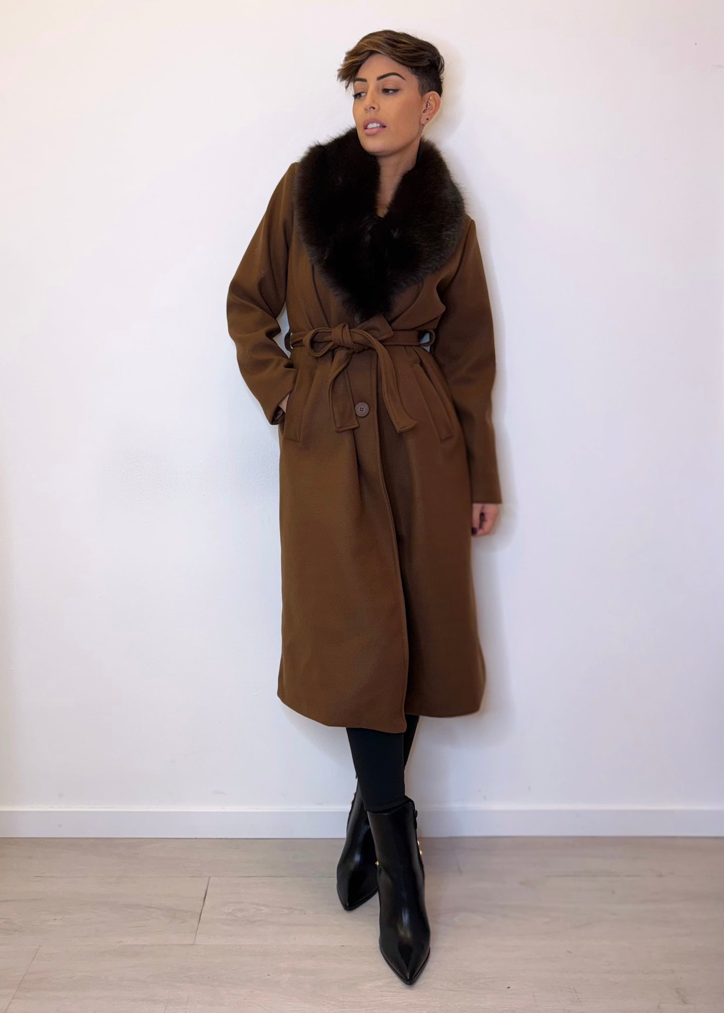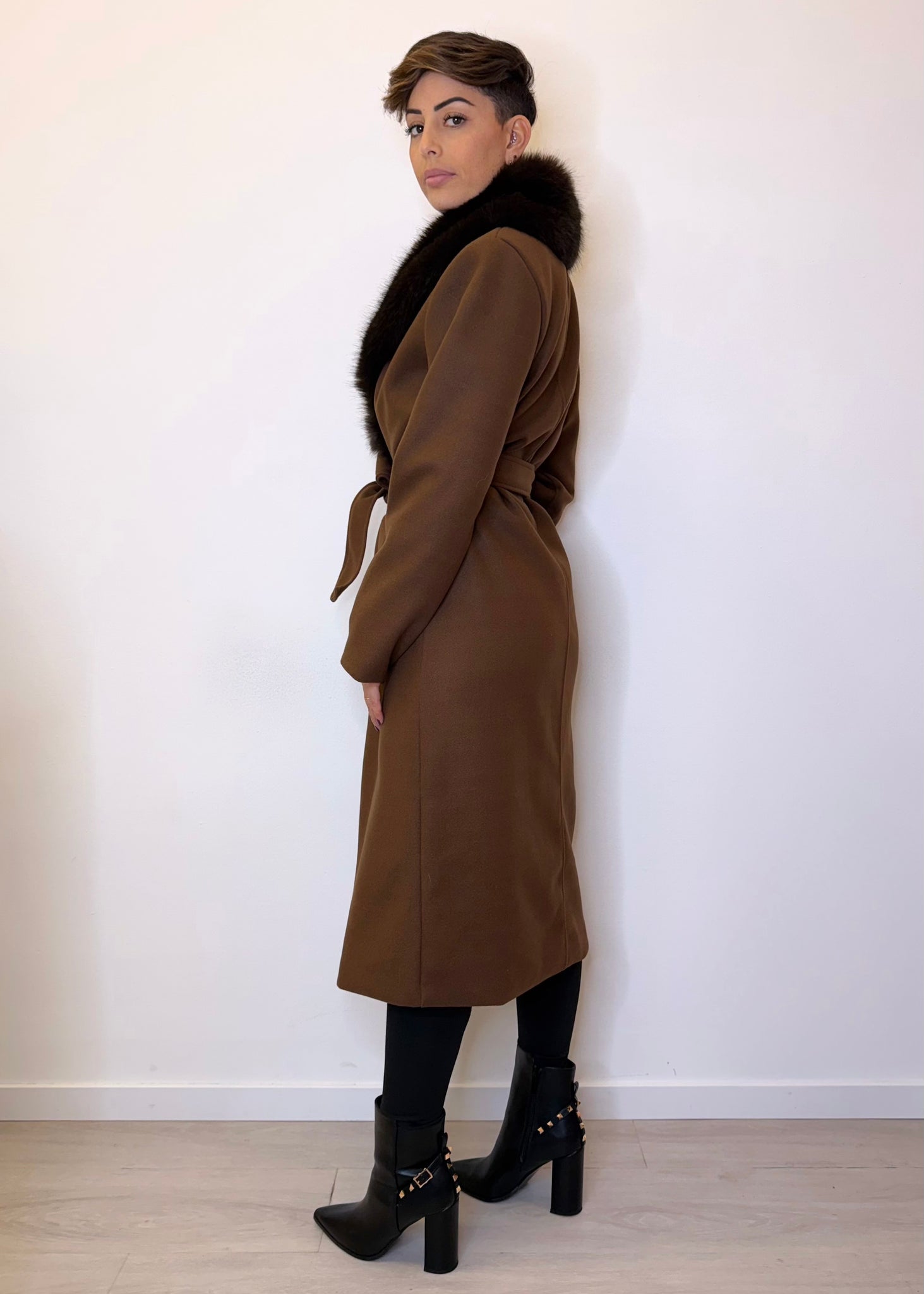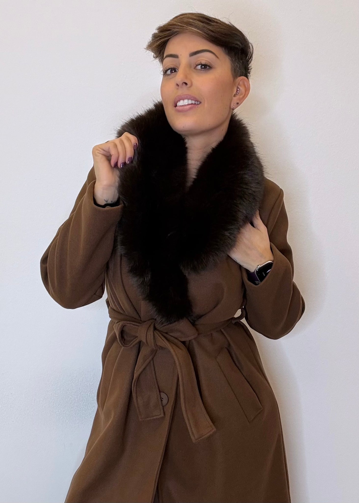 Cappotto lungo nero molto elegante con pelo e cintura, taglia che veste benissimo da una XS ad una L.