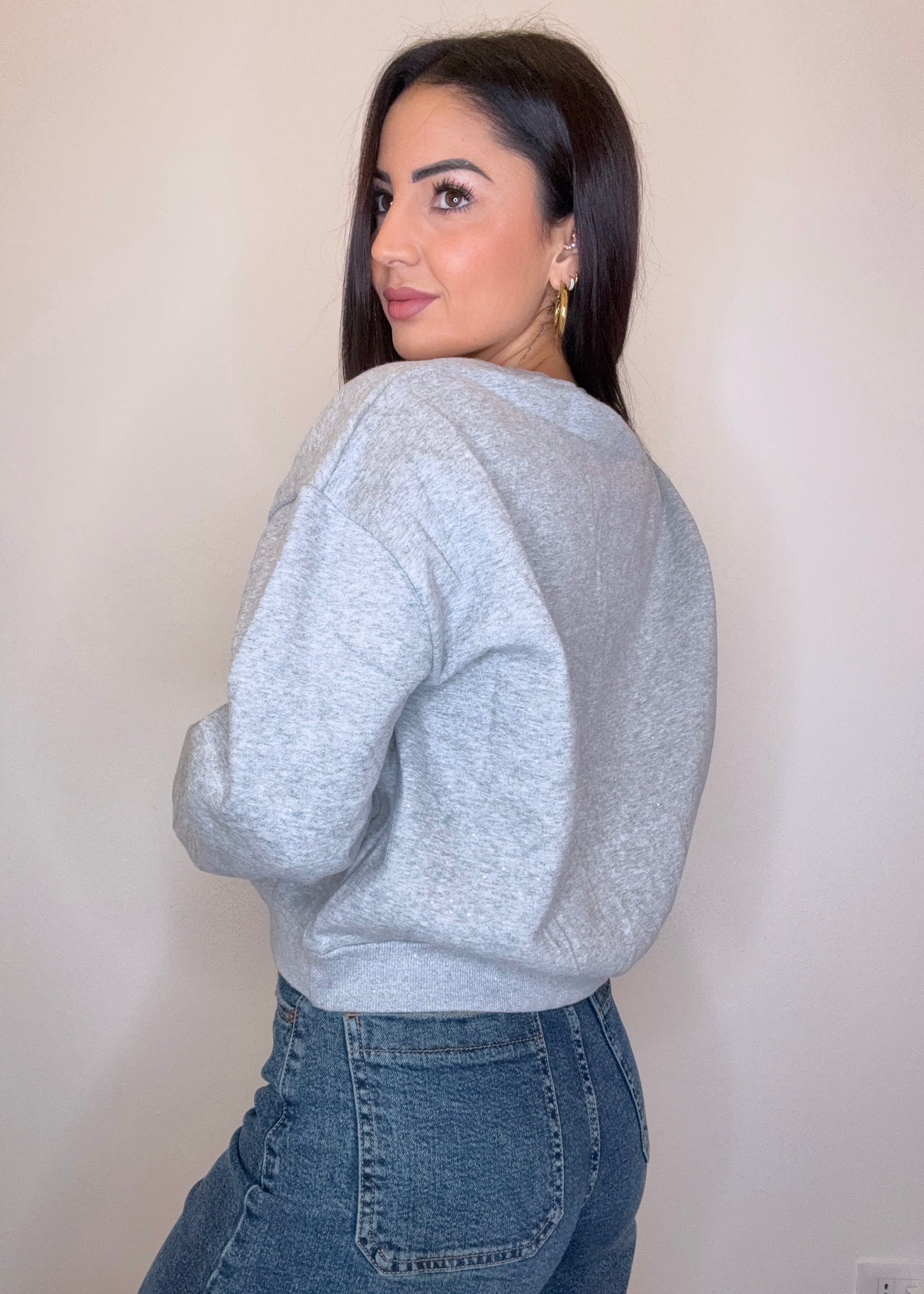 Felpa dallo stile slightly crop, non aderente, morbida e calda grazie all’interno felpato. All’esterno presenta una stampa distintiva arricchita da micro glitter che donano un tocco luminoso e femminile senza risultare eccessivi. Perfetta per aggiungere un dettaglio brillante ai tuoi outfit casual, mantenendo comfort e originalità.