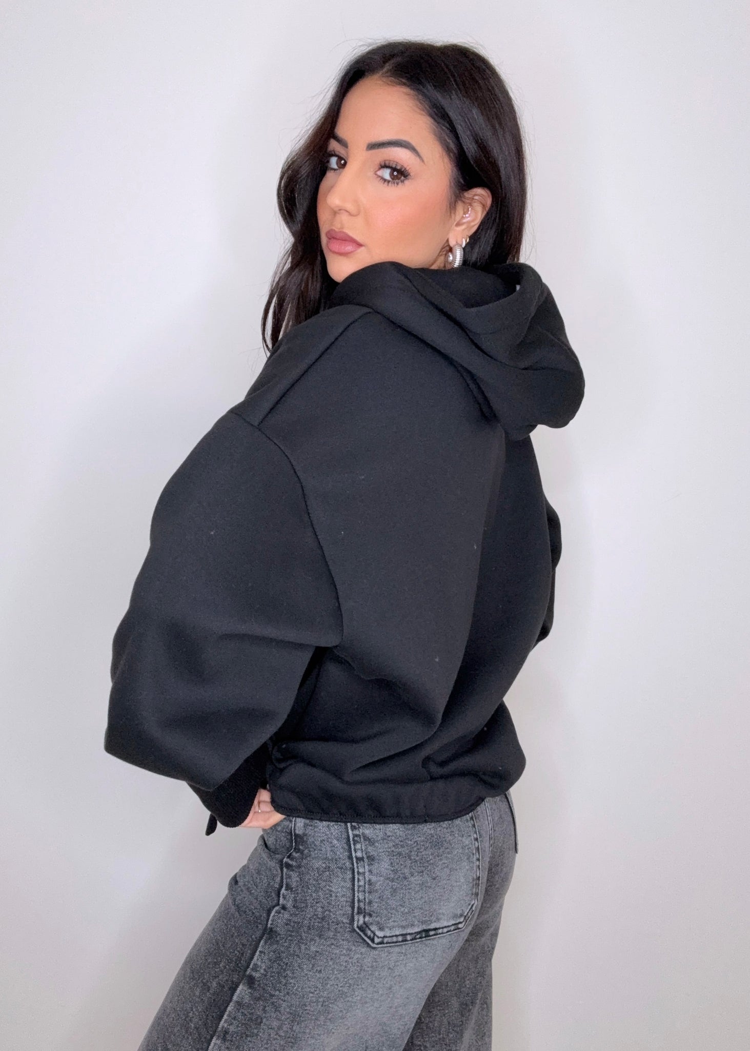 Felpa di top quality, morbida e super confortevole, con cappuccio e lacci extra-lunghi che le danno un tocco street deciso. Ha una vestibilità leggermente oversize che cade alla perfezione, per un look moderno, casual e davvero irresistibile.