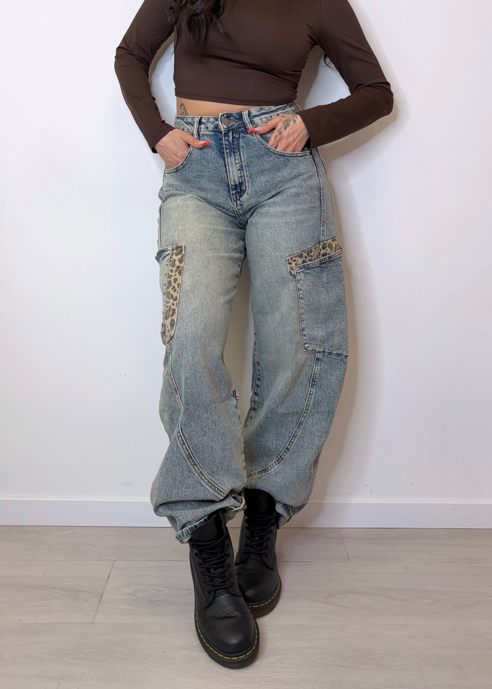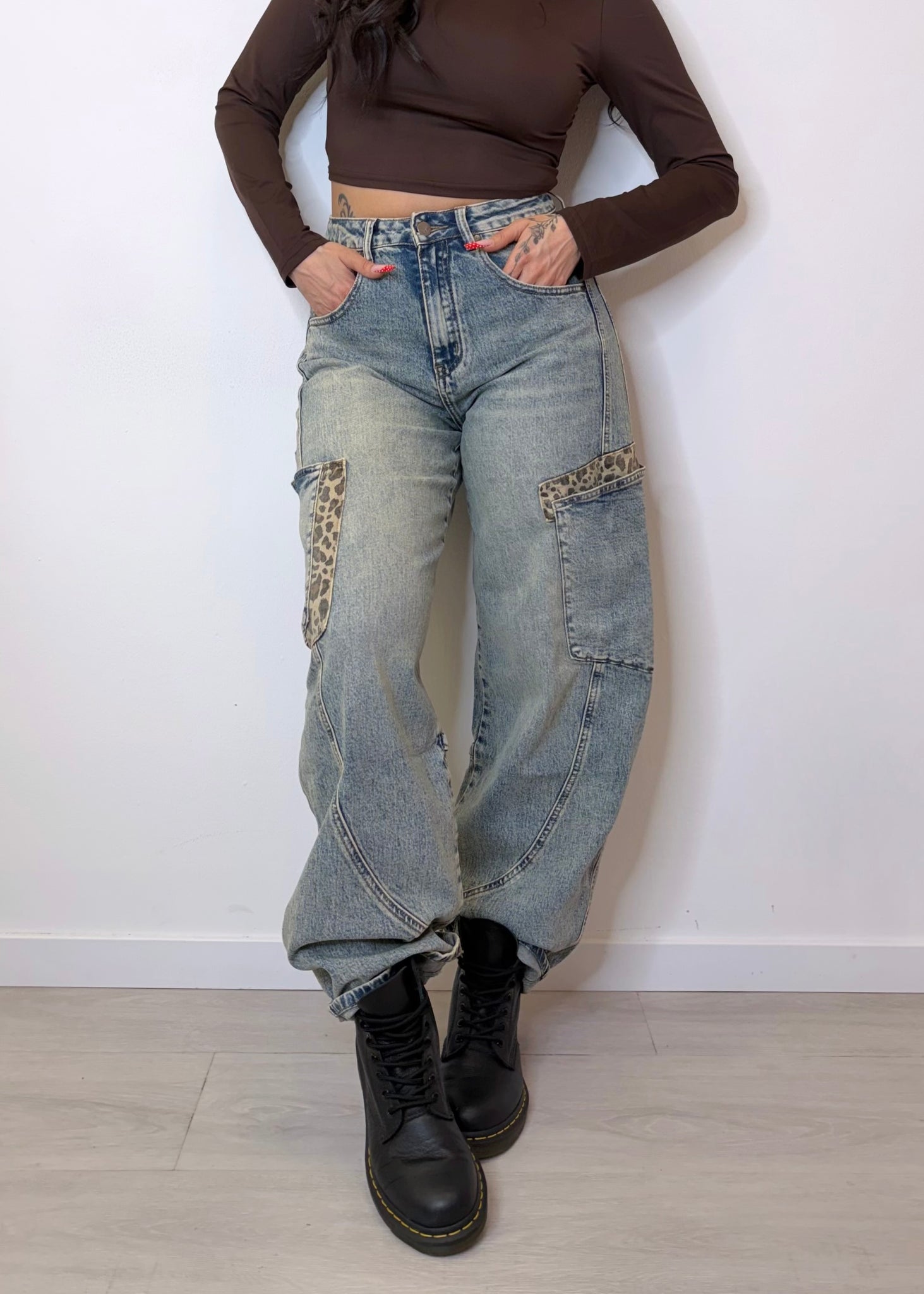 Jeans Balloon Elasticizzato super grintoso, un capo che non passa inosservato 🔥 Caratterizzato da toppe leopardate che aggiungono un tocco wild e di tendenza, è perfetto per chi ama distinguersi con stile.