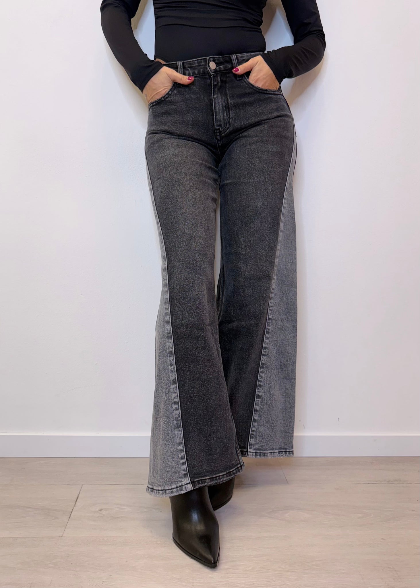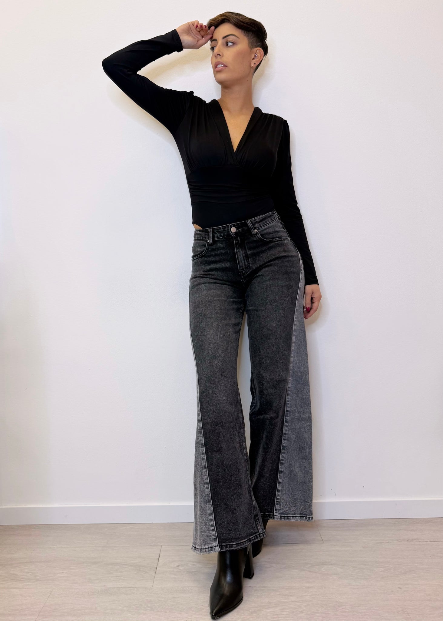 Raffinato, moderno e super chic, questo pantalone a palazzo è la definizione di eleganza contemporanea. Nella variante grigia bicolore, presenta un elegante spacco laterale in tono più scuro che slancia la gamba e aggiunge un tocco di originalità. La linea ampia e fluida valorizza ogni silhouette, mentre la vestibilità comoda lo rende perfetto per ogni occasione, dal giorno alla sera.