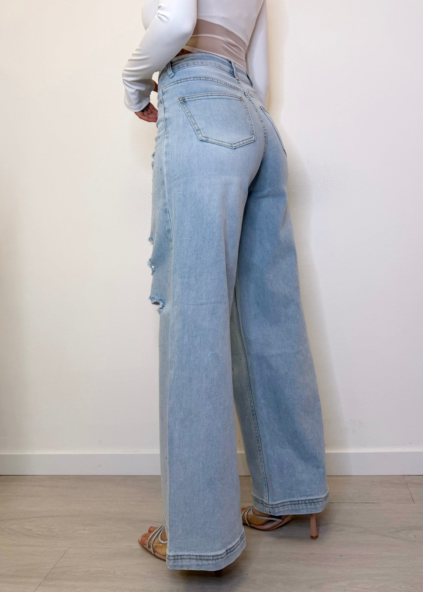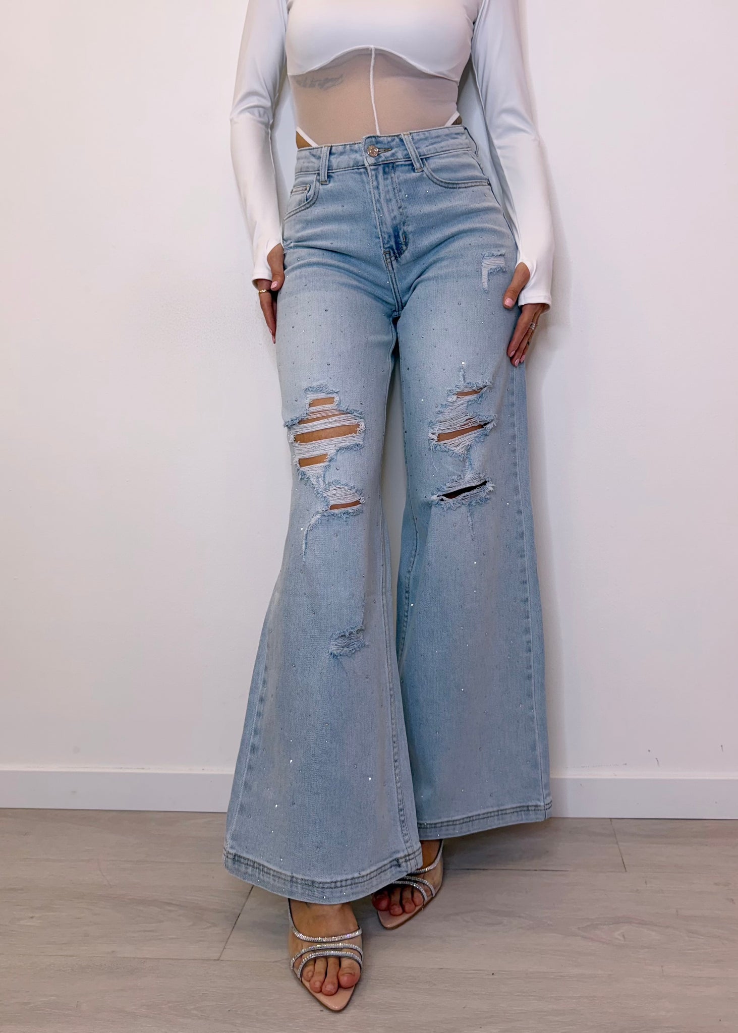 Jeans Palazzo con strappi e brillanti