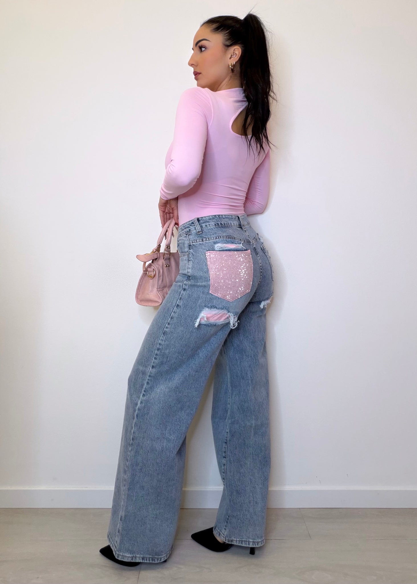 Jeans Pink Viral - con tasca rosa brillantinata