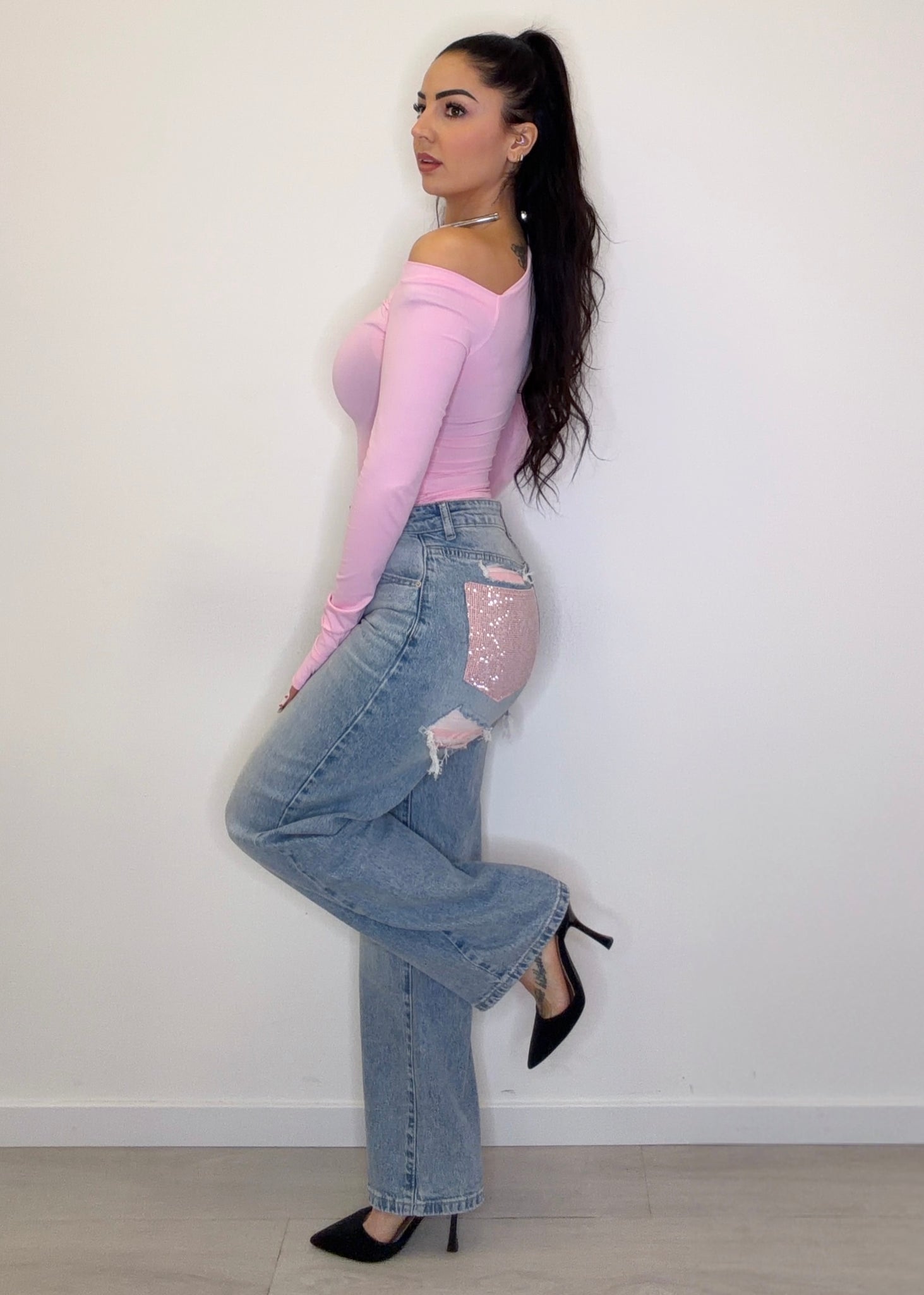 Jeans Pink Viral - con tasca rosa brillantinata