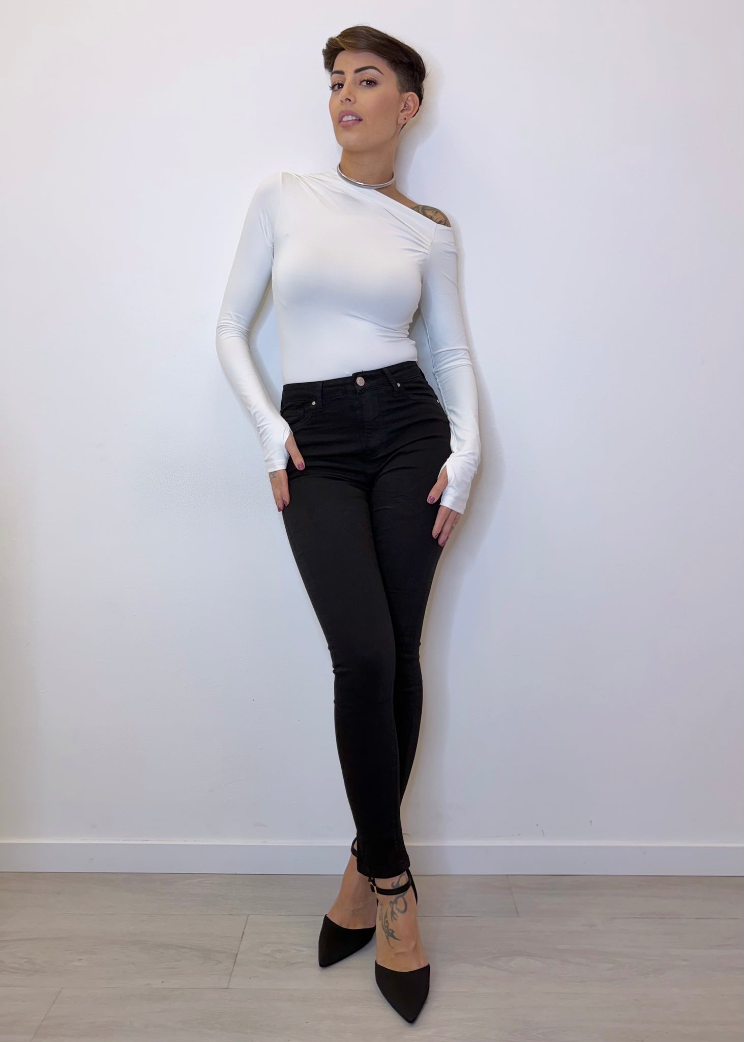 Esalta le tue curve con questi jeans skinny push up neri elasticizzati, perfetti per un look femminile e slanciato. Il tessuto elasticizzato modella la silhouette, garantendo comfort e vestibilità impeccabile. Ideali da abbinare a qualsiasi outfit, dal casual al più elegante.