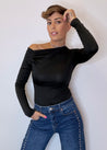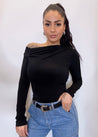 Maglia con spalla scoperta, poco elasticizzata, che veste una taglia unica che può andar bene da una XS a massimo una M.