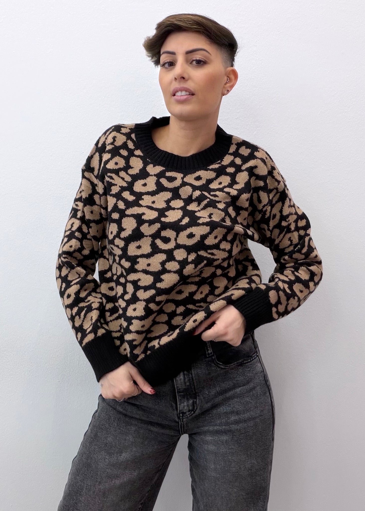Maglione leopardato, taglia unica molto morbida che veste bene da una S ad una XL.