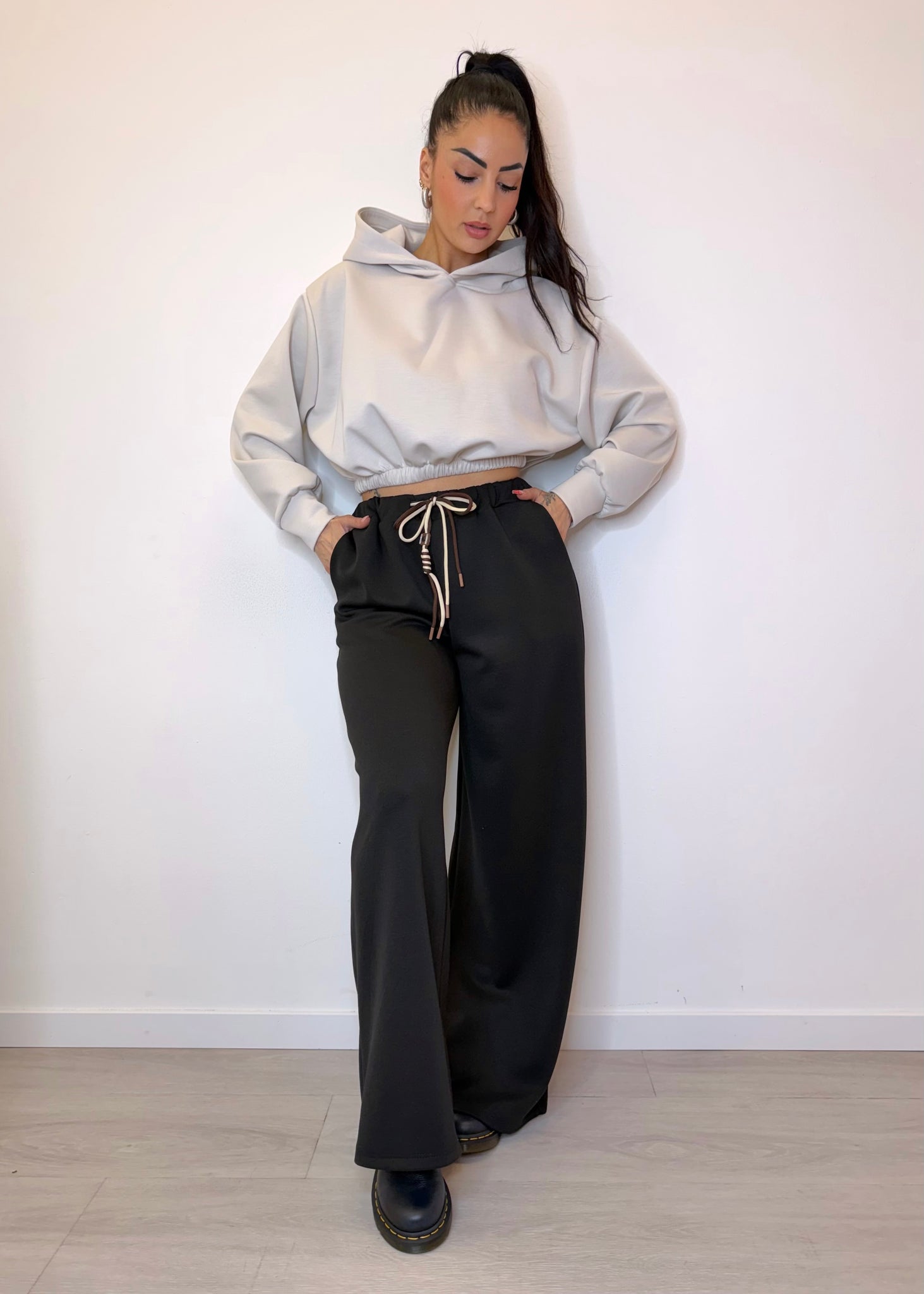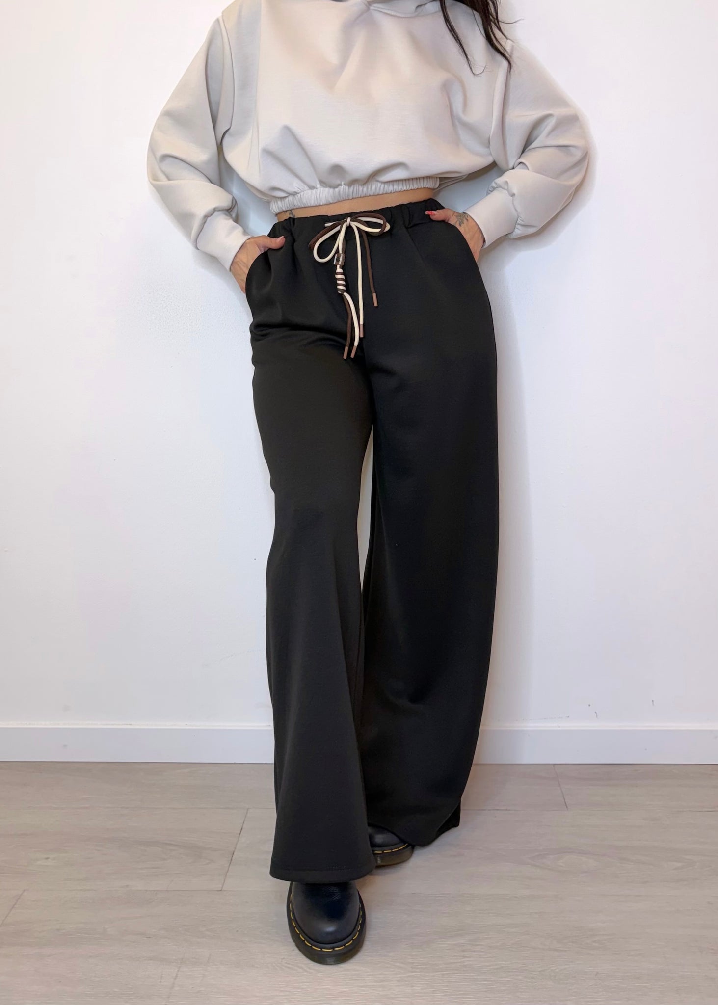 Home/ANEW/Pantalone tuta con lacci bicolor - nero