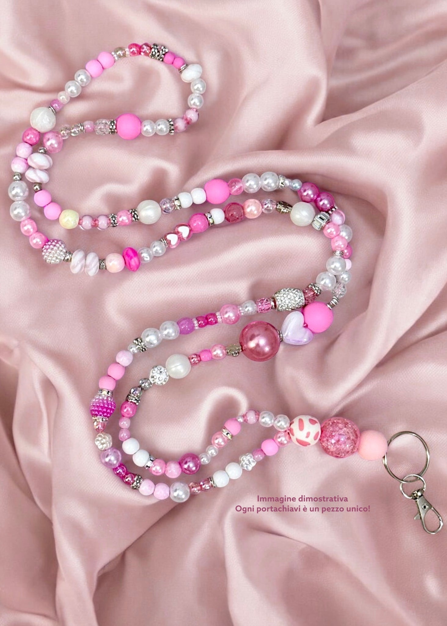 Portachiavi Lungo da collo di perle fatto a mano 💝 Rosa